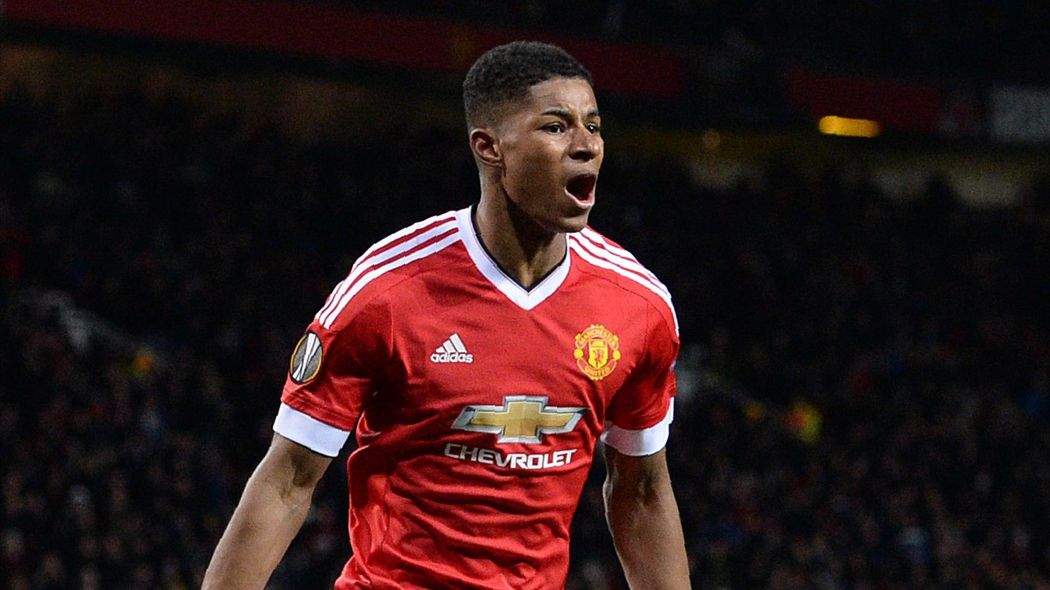 A Manchester United felnőtt csapatában 2016 február 25-én debütált, ráadásul rögtön kezdőként egy Európa Liga mérkőzésen. A Midtjylland elleni nyolcaddöntőbe jutásért vívott találkozón eredetileg Martial volt a kezdőbe nevezve, de a bemelegítésnél megsérült, Louis Van Gaal pedig nem volt szívbajos, betette a helyére 18 éves saját nevelésű szélsőt. Rashford nevét ekkor talán még a legelvakultabb Manchester United szurkolók sem ismerték, nem úgy mint két héttel később. A Midtjylland ellen duplázott, ezzel pedig ő lett a vörös ördögök legfiatalabb nemzetközi gólszerzője. Ezt a rekordot 51 évig tartotta George Best, aki 18 évesen és 158 naposan talált be európai kupamérkőzésen. Rashford a dánok ellen szerzett góljai időpontjában 18 éves és 117 napos volt. Vak tyúk is talál szeget, tartja a mondás, de Rashford igazolta, hogy rá ez cseppet sem igaz. 3 nappal később az Arsenal elleni rangadón is a kezdőbe nevezték, ő pedig ismét duplázott és még egy gólpasszt is kiosztott Ander Herraranak. A Manchester United így nyerte meg 3-2-re az ágyúsok elleni derbit. Rashford a 2015/16-os idényben még további 3 gólt szerzett, többek között a városi rivális, Manchester City kapujába is betalált.